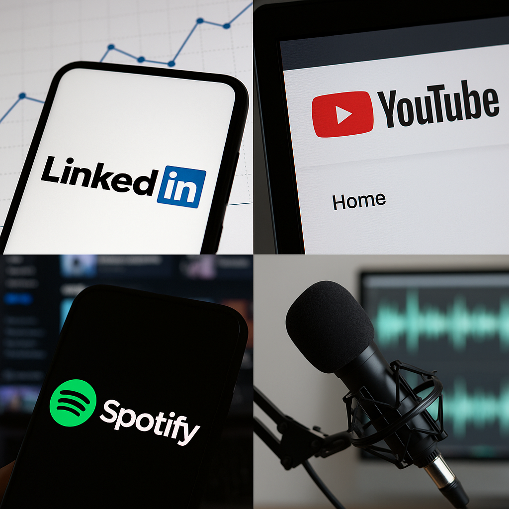 LinkedIn, YouTube, and Spotify are trademarks of their respective owners. Used for illustrative purposes only. No endorsement implied.